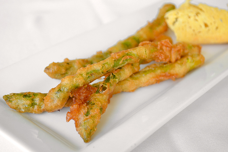 Tempura Asparagus, smoked tomato coulis, parmesan frico