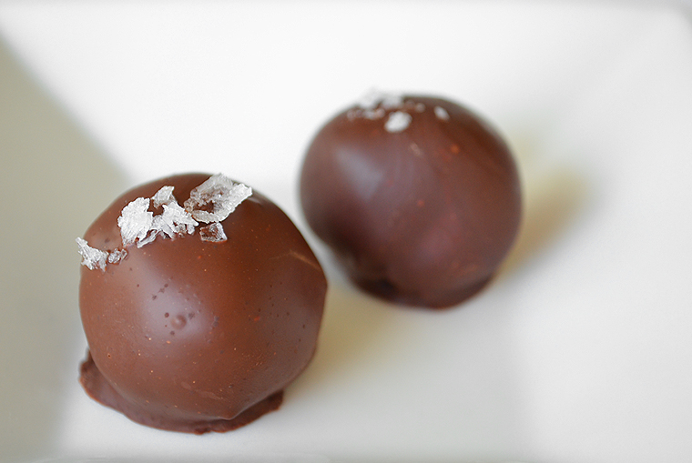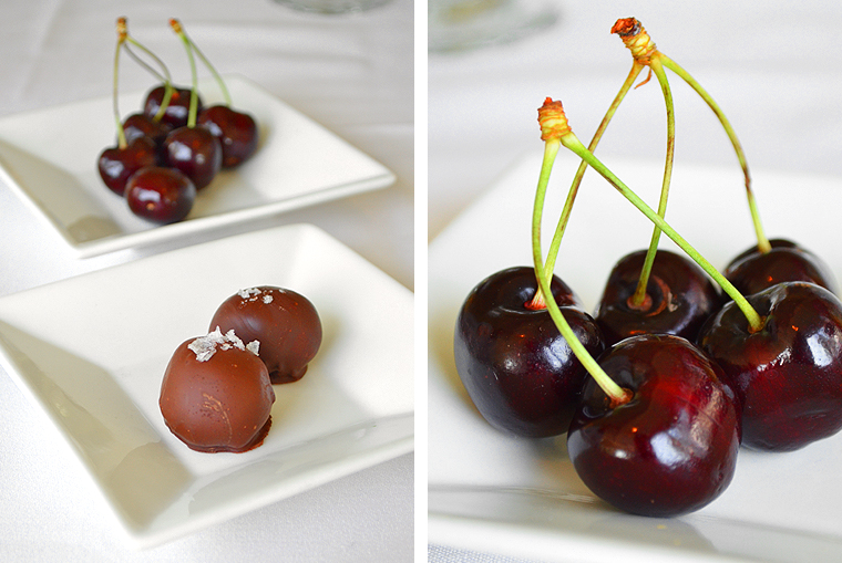 Valrhona Chocolate Truffle, earl grey ganache, maldon sea salt along with Fresh Michigan Sweet Cherries, first of the season